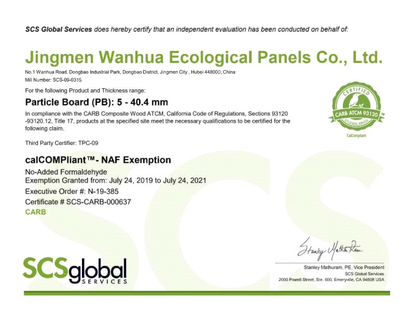 基材獲CARB NAF認(rèn)證出口豁免認(rèn)證